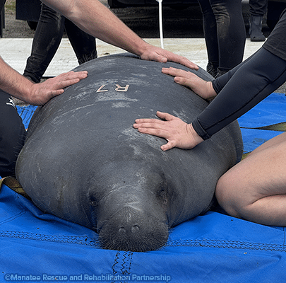 Febrero comenzó con mucha actividad debido a la gran cantidad de retornos en todo el estado, incluyendo la central eléctrica TECO en Apollo Beach, Crystal River y Blue Spring. Colaboramos en varios de los retornos en Blue Spring. Todos los manatíes devueltos están equipados con un dispositivo de rastreo satelital, para que los investigadores puedan monitorearlos y asegurarse de que se estén adaptando bien a la vida en la naturaleza. En ese sentido, todos los manatíes que ayudamos a rescatar y devolver en Blue Spring durante los últimos años regresaron esta temporada de invierno, ¡y todos se ven muy bien! Nos alegró especialmente dar la bienvenida de nuevo a Mary Kate y Tink Tink, ya que nuestro equipo las había ayudado a capturar con redes cuando eran pequeñas huérfanas durante la migración primaveral y las devolvió en 2023 y 2024, respectivamente. Ambas han crecido hasta convertirse en subadultas de aspecto saludable, y estamos ansiosos por que algún día tengan sus propias crías.